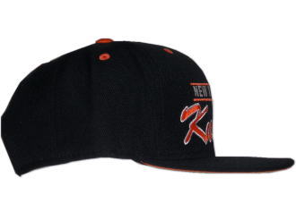 New Era 社のデザインとしても有名な、キャップのツバが平たくなったモデルの、2トーン(オレンジ × ブラック)キャップです。