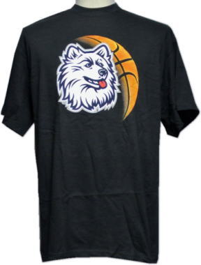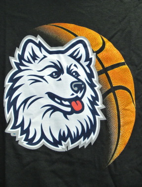 コネティカット大学のマスコット、ハスキー犬とバスケットボールがラバープリントされております。プリントはフロントのみです。