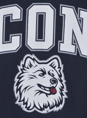 コネチカット大学の、大学のニックネーム UConn (University of Connecticut の略) と、ハスキー犬がラバープリントされております。