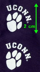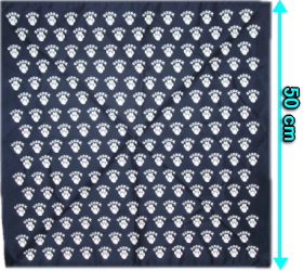 バンダナ生地に、ラバープリントでマスコットの足跡と大学のニックネームが入れられております。