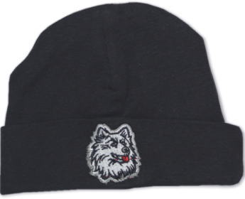 ベビーサイズのニットキャップです。フロントのロゴは刺繍になります。