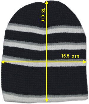 お子様が普段お召しのニットキャップを、画像2のようにして、たてと横の長さをお測り下さい。近い値でしたら、ご着用いただけます。