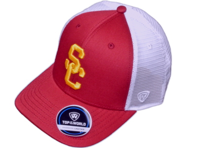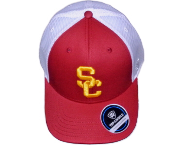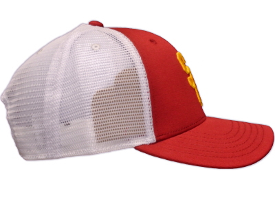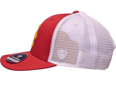 USCのカーディナル × ゴールド × ホワイトのトリコロールメッシュキャップです。